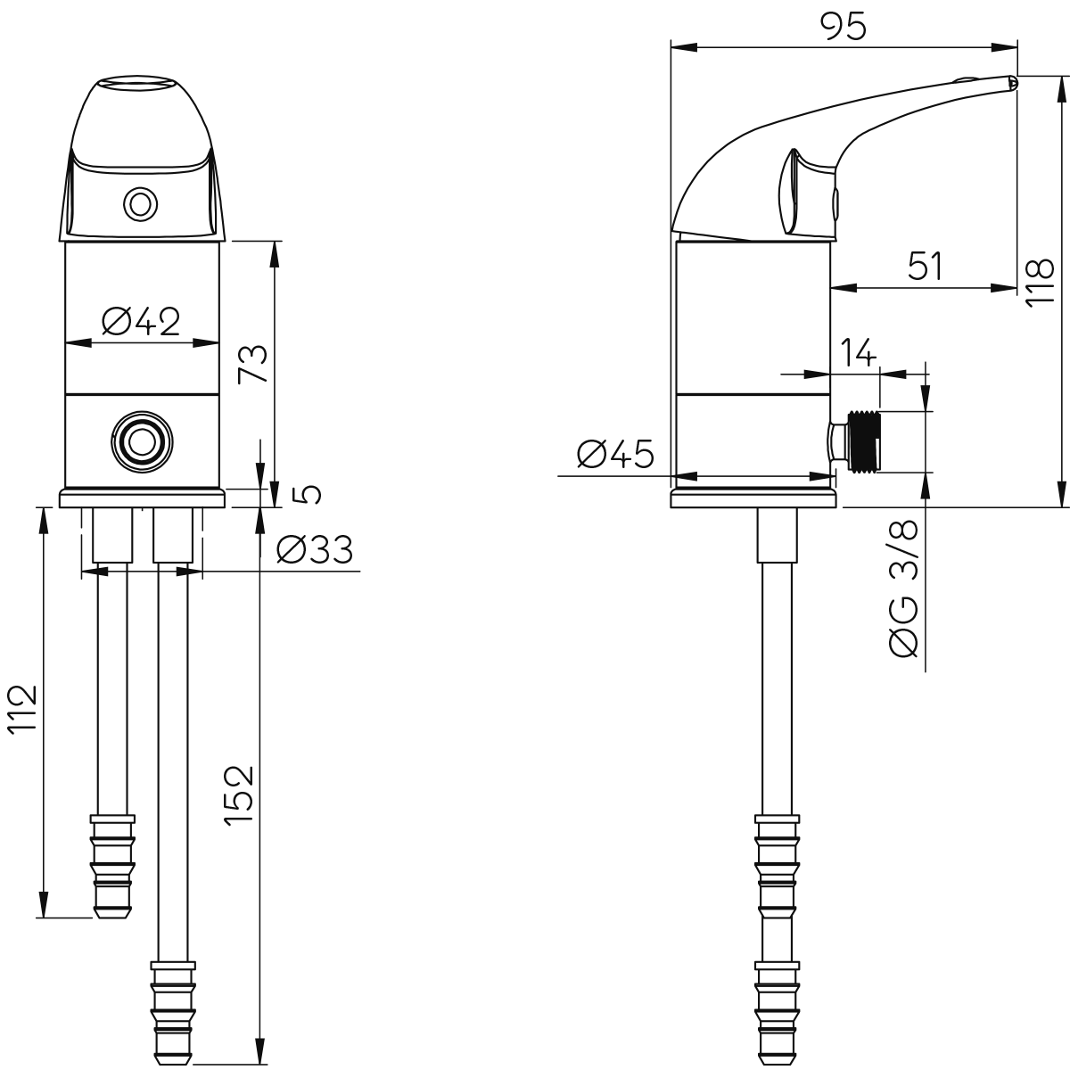Kupferrohranschlüsse für 10–12 mm Schläuche