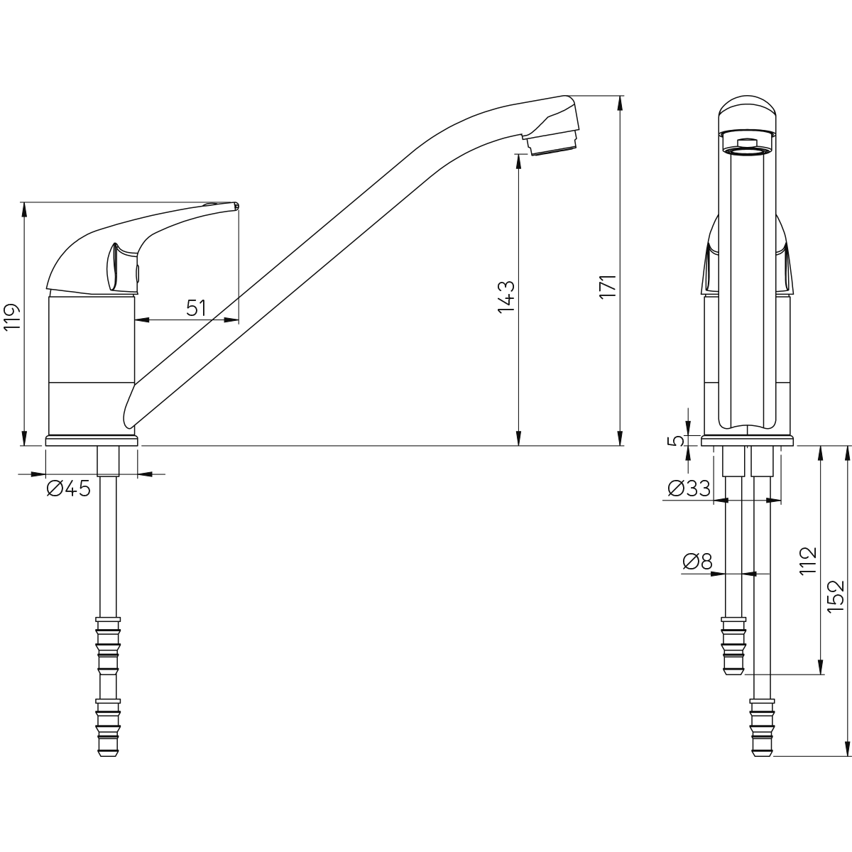 Kupferrohranschlüsse für 10–12 mm Schläuche