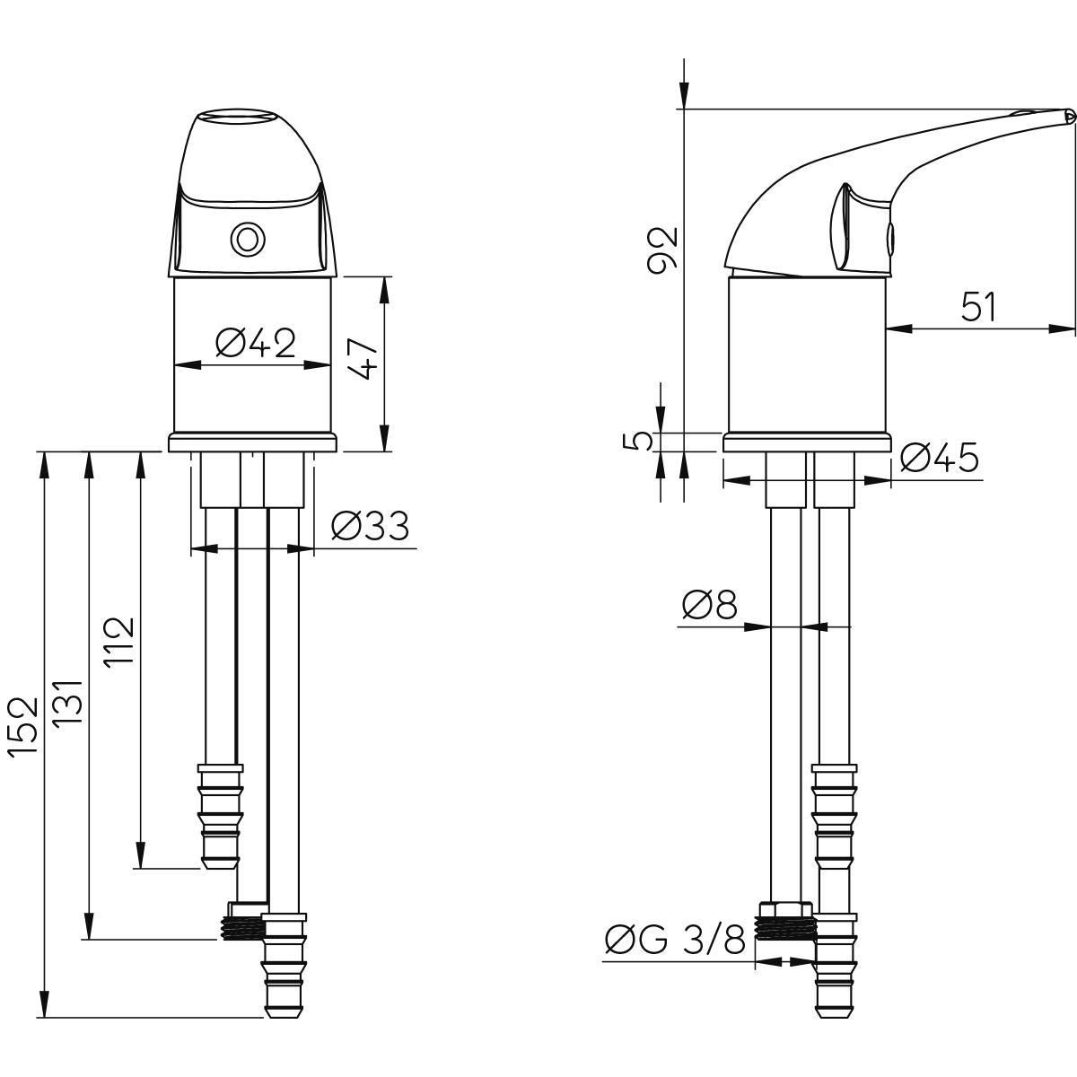 Kupferrohranschlüsse für 10–12 mm Schläuche