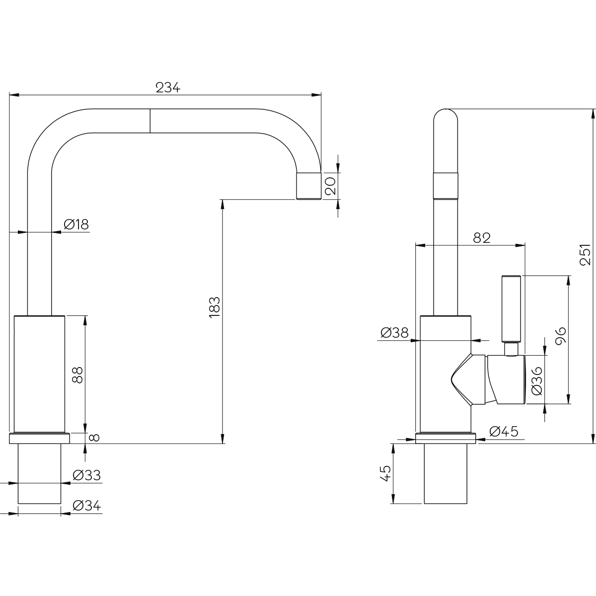 TREND S AD Auslauf winklig, drehbar, lange Ausführung