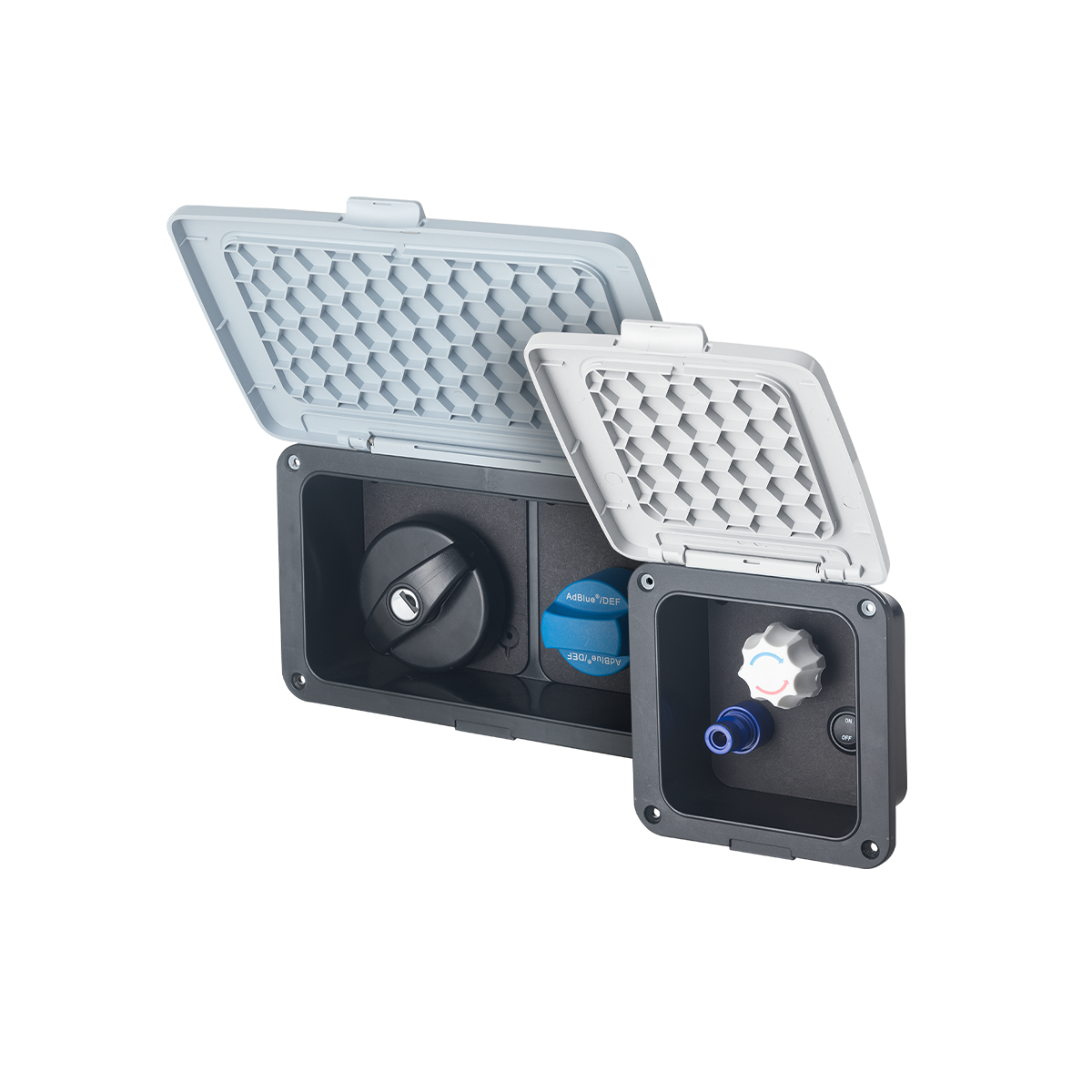 Sobald sie nicht mehr gebraucht werden warten die Anschlüsse gut versteckt und sicher geschützt z.B. hinter Versorgungsklappen auf ihren nächsten Einsatz.